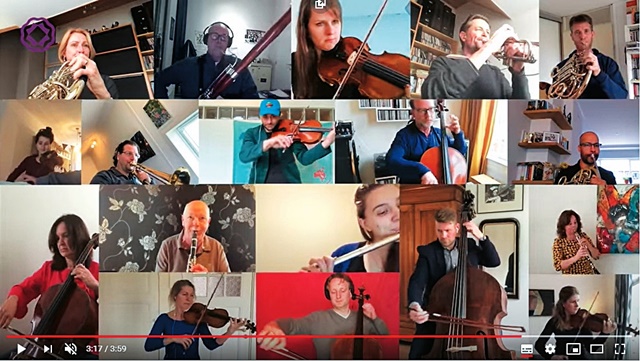 한편 로테르담 필하모닉 오케스트라 단원 19명은 베토벤 교향곡 제9번 중 ‘환희의 송가’를 각자의 집에서 연주해 하나의 영상으로 합쳤다. 유튜브에서 ‘Rotterdams Philharmonisch Orkest - Beethoven Symphony 9’을 검색하면 볼 수 있다. 이 영상은 순식간에 화제가 되면서 다른 오케스트라에도 영향을 줬다. 각 도시의 오케스트라 단원들이나 전문 연주자들이 합심해서 하나의 곡을 완성하는 #PlayOn 캠페인이 진행 중이다.