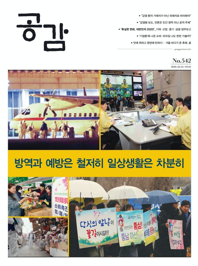 공감 한 컷 한반도 미세먼지 우주에서 잡는다 (共)공감 사람에서 사람으로 이번 주엔 <2020 제23회 제주들불축제> 등 코로나19 민간·정부, 감염증 극복 한마음 카드뉴스 “피해입은 모든 분들께 조금이라도 보탬을…” “치사율, 신종플루보다 높고 메르스보다 낮은 듯” “지역사회 감염 대응체계 대폭 강화… 지역방어망 구축” 김양중 한국보건복지인력개발원 교수“감염 환자 가해자가 아닌 피해자로 바라봐야” “감염병 보도, 언론은 민간 영역 아닌 공적 주체” 공감현장/‘기생충’ 촬영지 탐방 ‘기생충’에 나온 슈퍼·피자집 나도 한번 가볼까? 청년공감 영화 굿즈 제작업체 운영 어주영 씨 ‘봉테일’ 매료시킨 ‘기생충’ 굿즈 누가 만들었나 홍화정 만화–괜찮은 사람이 되기 위해 사라지지 않아요 확실한 변화, 대한민국 2020! 기재·산업·중기·금융 업무보고 혁신성장 성과 국민 체감도 높인다 소·부·장 확실한 자립으로 산업강국 도약 ‘K-유니콘 프로젝트’로 스마트 소상공인 키운다 확고한 금융안정으로 ‘경제에 활력, 국민에 온기를’ 내 삶과 정책 이주의 정책뉴스 정책현장 달라지는 키즈카페, 중금속 걱정 뚝~ 내 삶과 문화 코로나19 극복하고 막내린 겨울 스포츠축제 연재/이길우의 사람, 삶 통영 양식 굴 맛에 취하고 영양에 반하다겨울 바다가 준 축복, 굴 연재/미래 이야기 너를 만났다 연재/차우진의 ‘문화 트렌드 리포트’ ‘기생충’과 빌리 아일리시 연재/박인권의 ‘명화 다시보기’ 생명의 탄생과 삶, 죽음… 존재의 근원을 묻다 참여공감 공감(感) 다시 봄 ㅤ