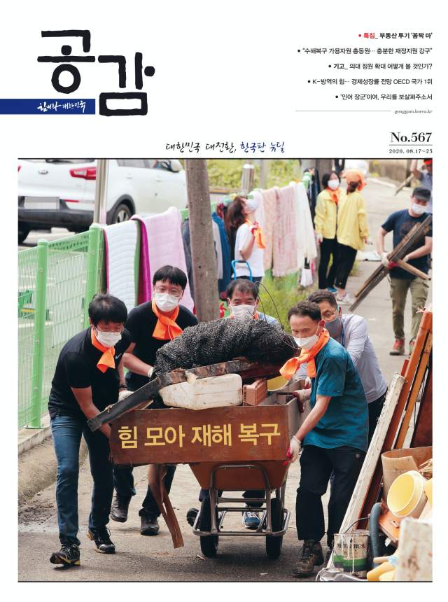 공감 한 컷 ‘아, 8·15’ (共)공감 인도의 맛 3 지난 것과 남은 것 이번 주엔 <소장품 집콕놀이> 등 국정종합 2차 특별재난지역 11개 지자체 선포… 재난지원금은 두 배로 의대 정원 확대 어떻게 볼 것인가? 인구 대비 환자는 제일 많은데 의사 수는 OECD 최하위권 대한민국 대전환, 한국판 뉴딜 “단기 성과 몰입 대신 긴 호흡으로 접근하고국가균형발전 향한 획기적 대책 모색해야” 기고/ 포스트 코로나 시대 ‘문화 뉴딜’의 가치 이주의 한국판 뉴딜 특집 부동산 투기 ‘꼼짝 마’ 집값은 잡고, 내집 마련 기회는 늘리고 새 임대차 제도로 서민 주거비 부담 커진다고?세입자 거주 안정성과 법적 권리 강화가 목적 홍화정 만화-괜찮은 사람이 되기 위해 여름의 소리 힘내라 대한민국 K-방역의 힘… 경제성장률 전망 OECD 국가 1위 아하! 공감 국민건강보험과 ‘병원비 걱정 없는 사회’ 건강보험, 코로나19 때 어떻게 쓰였나요? 공감이 만난 사람 ‘도시청년 시골파견제’로 사업 시작한 이현우 씨 “아이디어 하나로 문 두드리니 창업에 날개 달아줘” 8대 쿠폰 이렇게 누리자_전시·공연 온라인 예매하고 국보·보물 ‘알뜰하게’ 보러 가요 내 삶과 문화 이숙진 스포츠윤리센터 초대 이사장 인터뷰 “피해자가 안전하게 보호받고 신고할 수 있게 할 것” 기획-추경, 이렇게 쓰인다 공공부문 주도 일자리 실업 충격과 생계 위협으로부터 안전한 세상 위해 창작자가 만드는 <공감> 콘진원 아이디어 융합팩토리 영상으로 만나는 ‘공감’ 기사, 재미가 쑥쑥 내 삶과 정책 이주의 정책뉴스 연재/이길우의 사람, 삶 설운 장군의 전설 수우도 ‘인어 장군’이여, 우리를 보살펴주소서 연재/김신의 ‘고마워 디자인’ 창조와 혁신의 고갈 연재/포스트 코로나를 여는 농업 전도사 이도헌 성우농장 대표 사물인터넷으로 쑥쑥 크는 친환경 돼지농장 참여공감 공감(感) 부부 새
